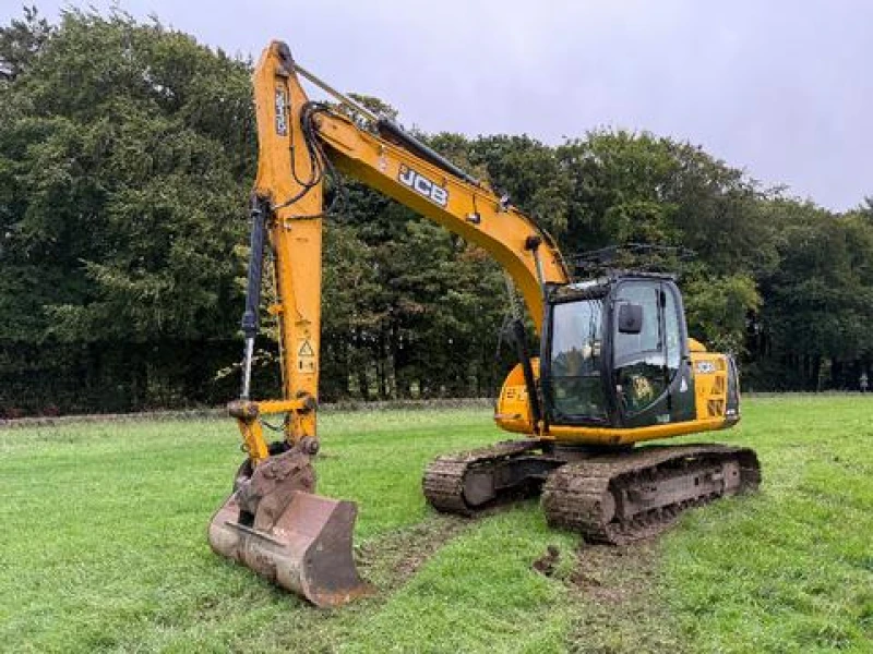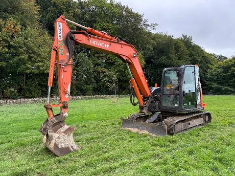 A selection of well-maintained construction and civil engineering equipment including excavators, rollers, dumpers, telehandlers, and a road sweeper