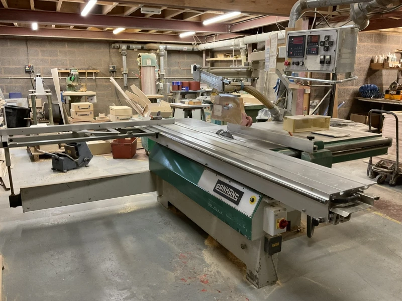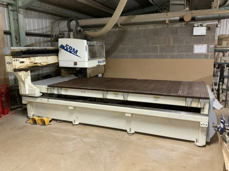 Timed online liquidation auction in Chesterfield featuring a broad selection of traditional woodworking machinery, CNC equipment, workshop machinery, dust extraction, compressors, tools, timber stock and storage equipment.