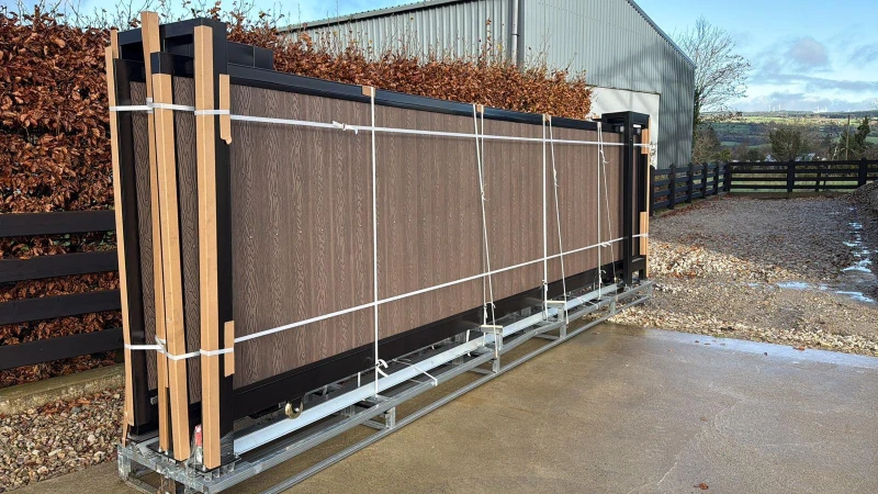 - Unused 13ft electric sliding gates in composite finish with motor and key fobs