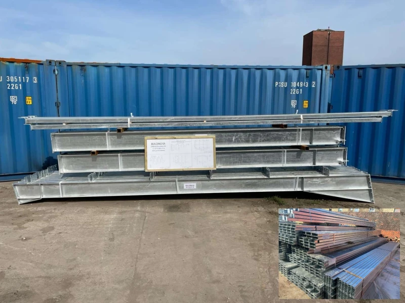 To include Unused Agricultural Galvanised Steel Buildings in Various Sizes