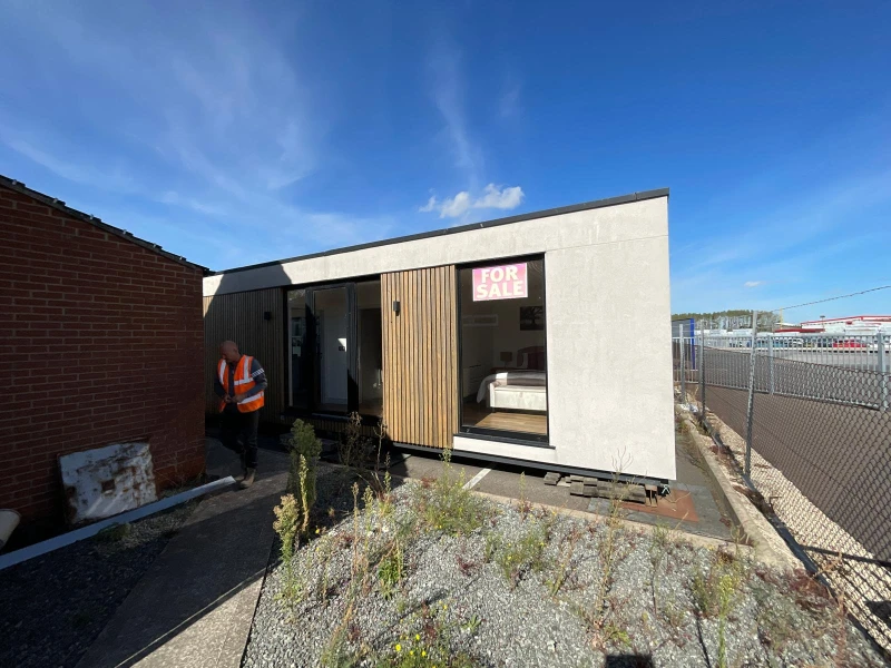 Built to a very high specification, this modular home offers open-plan kitchen and living accommodation complete with all appliances as seen.