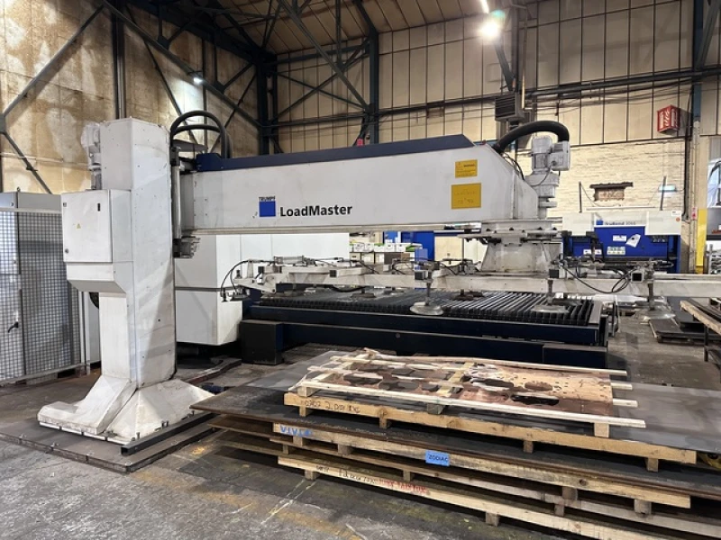 Trumpf Trulaser 5040 Type L69 Flat Bed Fiber Laser Cutting Machine, Sheet Size 4000 x 2000mm, Trudisk 800i (FD25) Fiber Laser, L4221N0240, Riedel PC501 Chiller, Trumpf Loadmaster. S/No. N0014A0345, Trumpf Campfil MF8.6 Dust Collector, Riedel L o/5 TR3.26B Chiller, Trumpf 05.21.00 Operating System, Laser Capacity 8000W, Working Range 4000 x 2000mm (X & Y), Z Axis 115mm. S/No. A2251EO145 (2016)