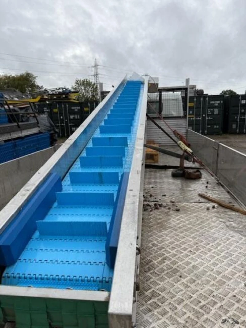 - Stainless Incline Conveyor 400mm x 5 mtrs by polar all stainless tested, 75mm hight flytes, 250mm p