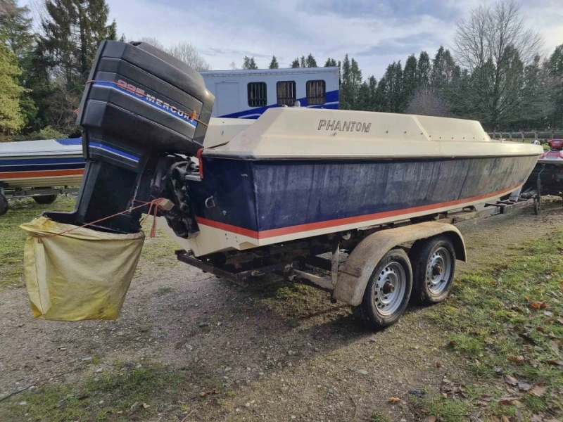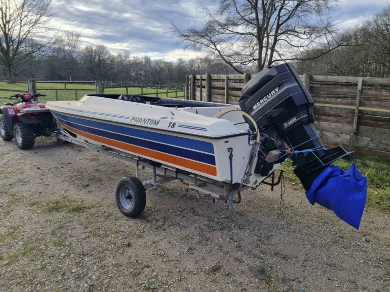 18ft Phantom Sports Boat with Mercury 200 outboard motor on trailer.
