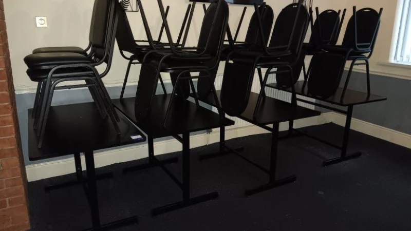 - Stainless steel topped table 1,650 x 680 with Vogue can opener