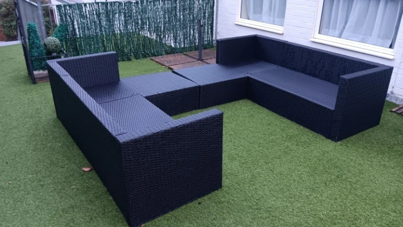 - Faux leather buttoned 2-seat sofa with studs – Reception