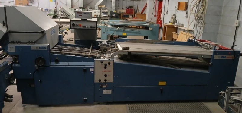 Online auction of print finishing and bindery equipment including a Muller Martini Bravo S stitching line, Schneider Senator guillotine, multiple MBO folders, and a Toyota forklift. Ideal for commercial printers and finishing houses seeking proven production kit. By order of the Proposed Liquidator.
