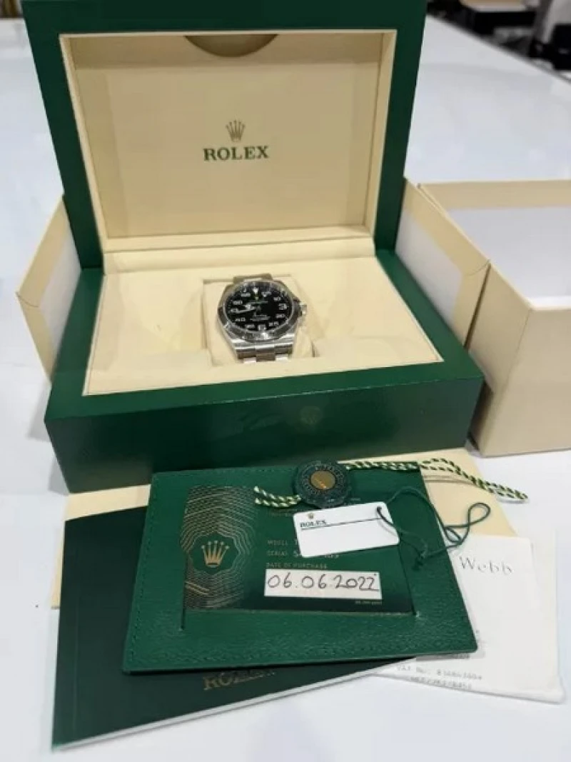 2022 Rolex Air King 126900 with Original Box, Authenticity Card with NFC Chip, Papers, Swing Tags & Purchase Receipt. Condition; Used & Will Show Signs of Wear and is Unpolished.