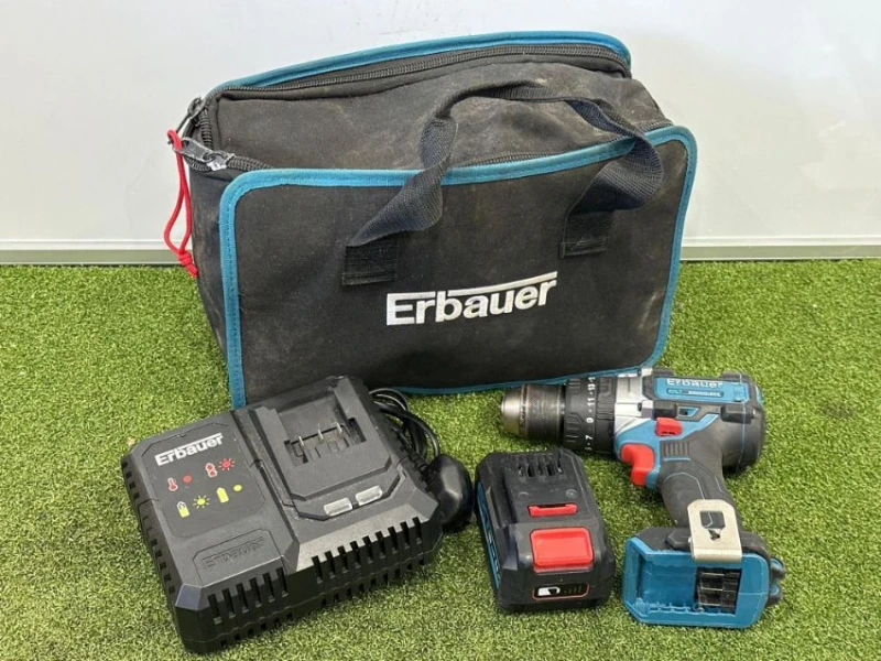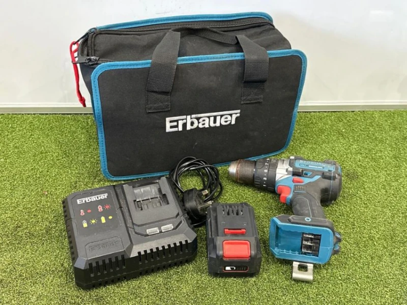- Unused Erbauer ECDT18-Li-2 Combi Drill with 2x 18v Li-Ion Batteries, Charger & Carry Case