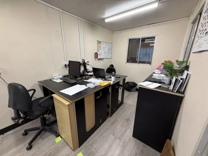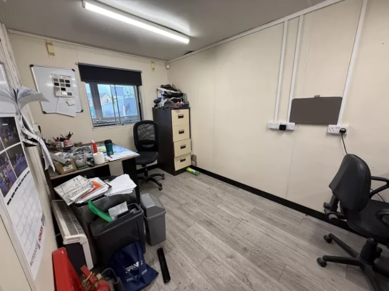 - 3no. Desks and Office Chairs, Electric Fit Out, Cladded 3-Sides, 3no. Windows. Any IT Equipment, Paperwork and Items Outside of the Furniture are Excluded.