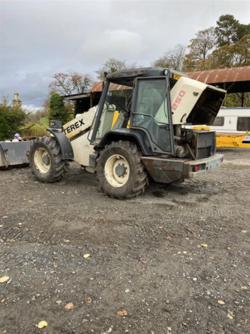 Salvage 2007 Terex T252 Telehandler, No Attachments, Circa 10,000 Hours Recorded at the Time of Damage. Machine does not start or run. Tipped over and skidded before impacting with a wall. Damage to the Cab but not limited to.