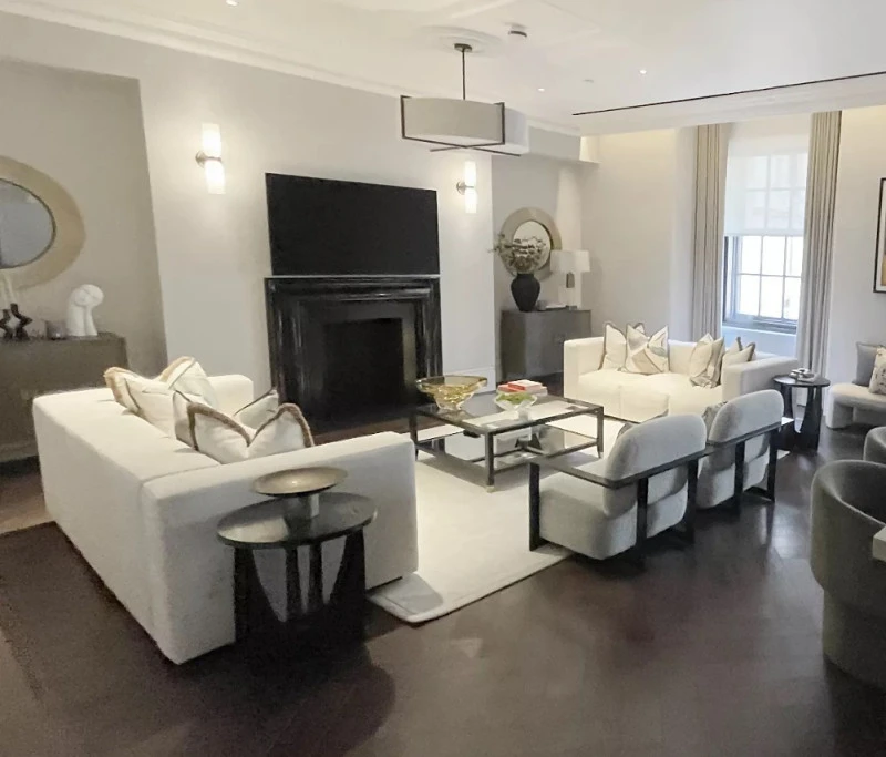 Contents of a Luxury Central London Show Apartment + Homewares includes high-end furniture, lighting, wall art, rugs, mirrors, decorative accessories and branded kitchen appliances.