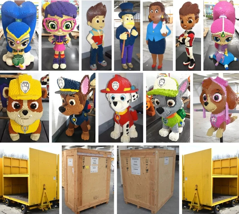 Giant Exhibition Quality Lego Brick Sculptures of Various Cartoon Characters. This exclusive and unique online auction of professionally built display models also includes Multipurpose Trailers, Face-in-Hole Boards and More!
