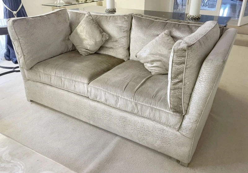 - Large Silk Upholstered Sofa In Cream With Claw Feet