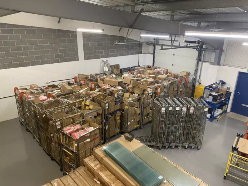 - Large quantity of stock not in roll cages (see pics of brown boxes)