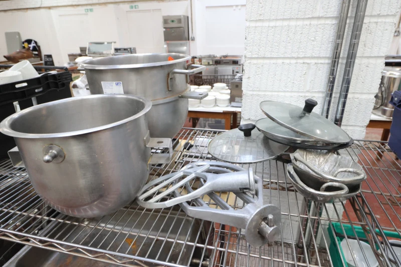 Kitchen Equipment: Mareno Gas Fired 6 Burner Range, 4ft 240V Mobile Carvery, 5ft Double Bowl Single Drain Stainless Steel Sink, Stainless Steel Stand & Tray Trolley, 24Inch Chip Scuttle, 4ft Gas Fired Hog Rotisserie, Natural Gas Fired 2 Pan Aga, Mareno 24Inch 240V Griddle, 4ft Stainless Steel Prep Table, Lincat 24Inch Charcoal Grill, Electrolux 3 Phase Single Deep Fat Fryer, 3-Phase Stainless Steel Case Mixer, Adexa 240V Table Top Mixer with Bowl & Attachments, Falcon 240V Single Basket Pasta Boiler, 24Inch Mobile Socamel Carvery, Falcon 6 Burner Range, Moorwood Vulcan Electric Range, 240V Mobile Carvery, Lincat Twin Drawer 240V Electric Warming Cabinet Chest, Winterhalter Feed in Feed Out Crockery Washer, Mareno 3-Phase Electric Deep Fat Fryer, Single Phase Twin Basket Deep Fat Fryer.