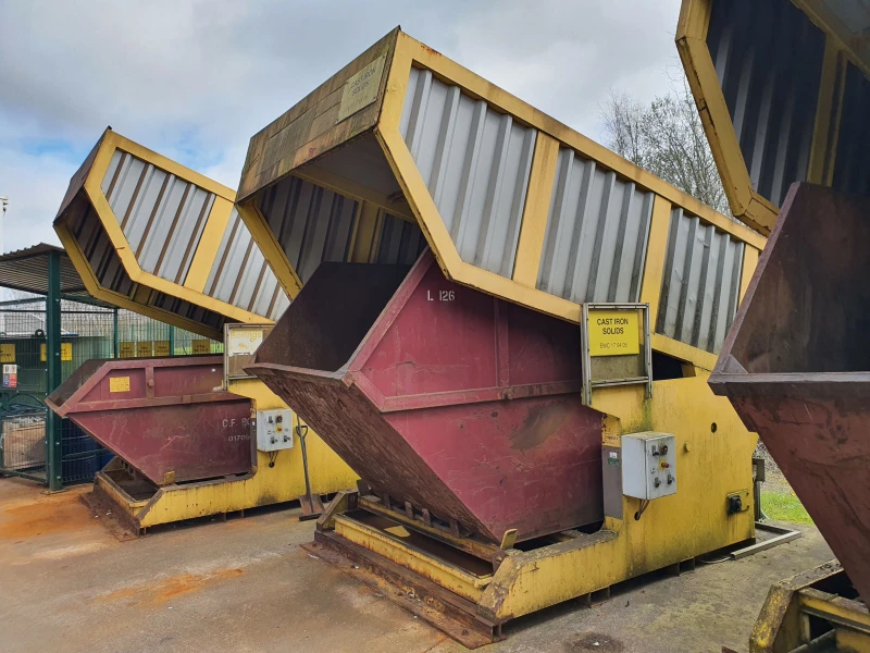 - 5x Berkels hydraulic skip lids (2006). Wire mesh caged stores area