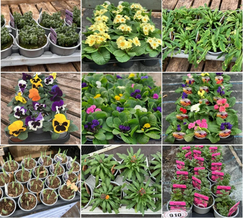 - Spring plants & bulbs including Aubrieta, Delphinium, Digitalis, Saxifraga, perennials, primroses, pansies, snowdrops, narcissus & more!