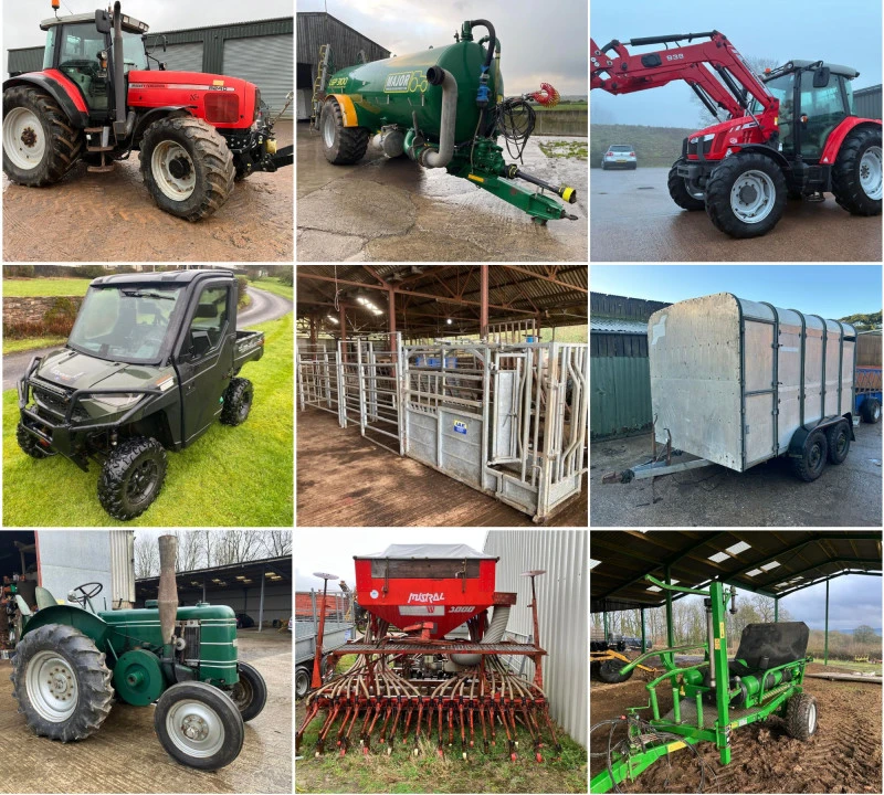 Plus ATV sprayer, bale grabs, tyre changer, woodworking tools (DeWalt, Makita etc), garden machinery, field shelter, troughs, timber & more