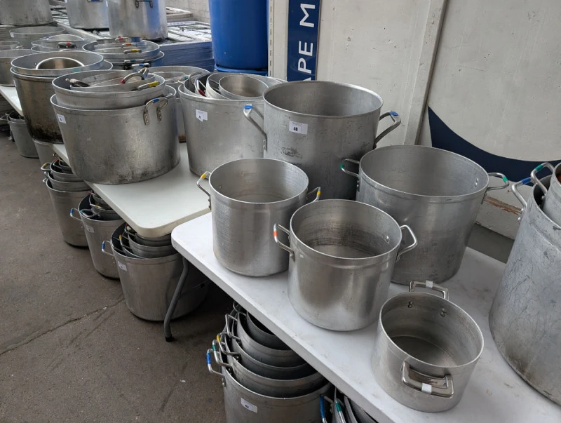 - Large consignment of 5 piece sets of aluminium twin handled pots
