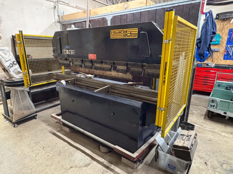 Edwards Adira QH-3020 press brake; Baileigh MC1000 TT morticer; UPVC double ended saw; Formec mini vacuum former; Clarke hot wire cutter; Ryobi folding table saw; Clarke shot blast cabinet; Clarke table saw; Summa vinyl cutter; Ooznest 3 axis CNC router;