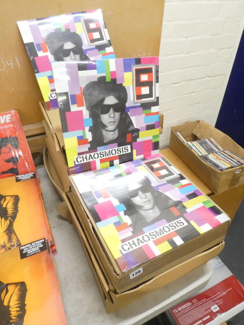 The remaining stock of a music shop including