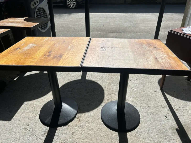 - 2 x oak topped tables, approx. 650mm x 600mm