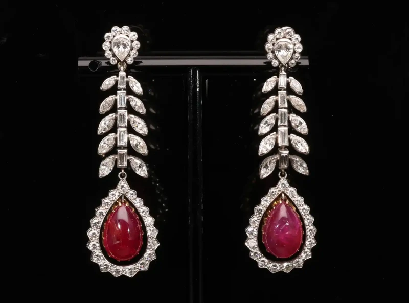 - Ruby & Diamond Drop Earrings in Platinum & Gold
