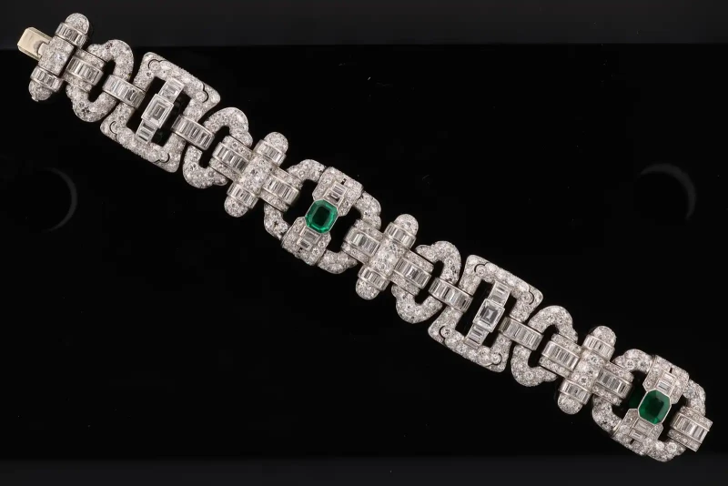 - Cartier Art Deco Emerald & Diamond Platinum Bracelet