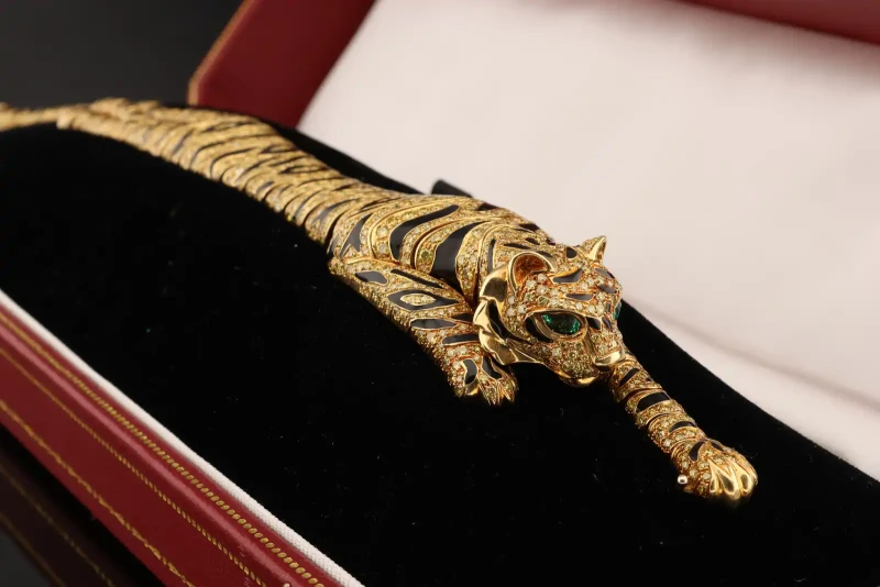 - 18ct Yellow Gold & Enamel Panther Bracelet