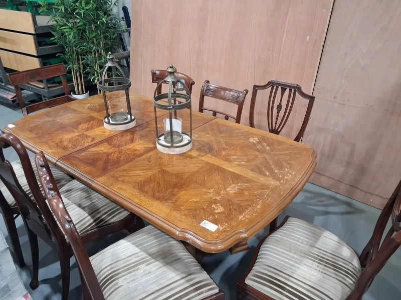 - Approx 180cm x 100cm Collapsable Brown Table with 8 Chairs & 2 Candle Holders