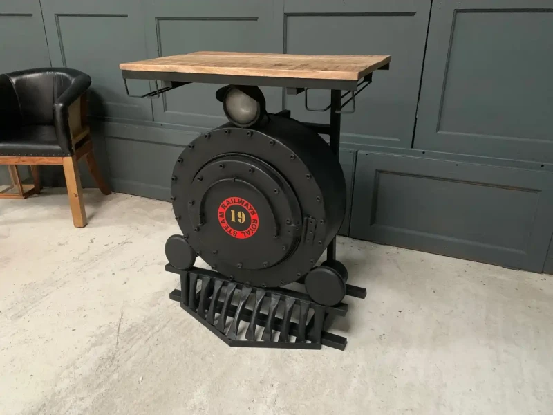- Large Heavy Metal Steam Engine Bar Counter, Wine Rack & Glass Holder